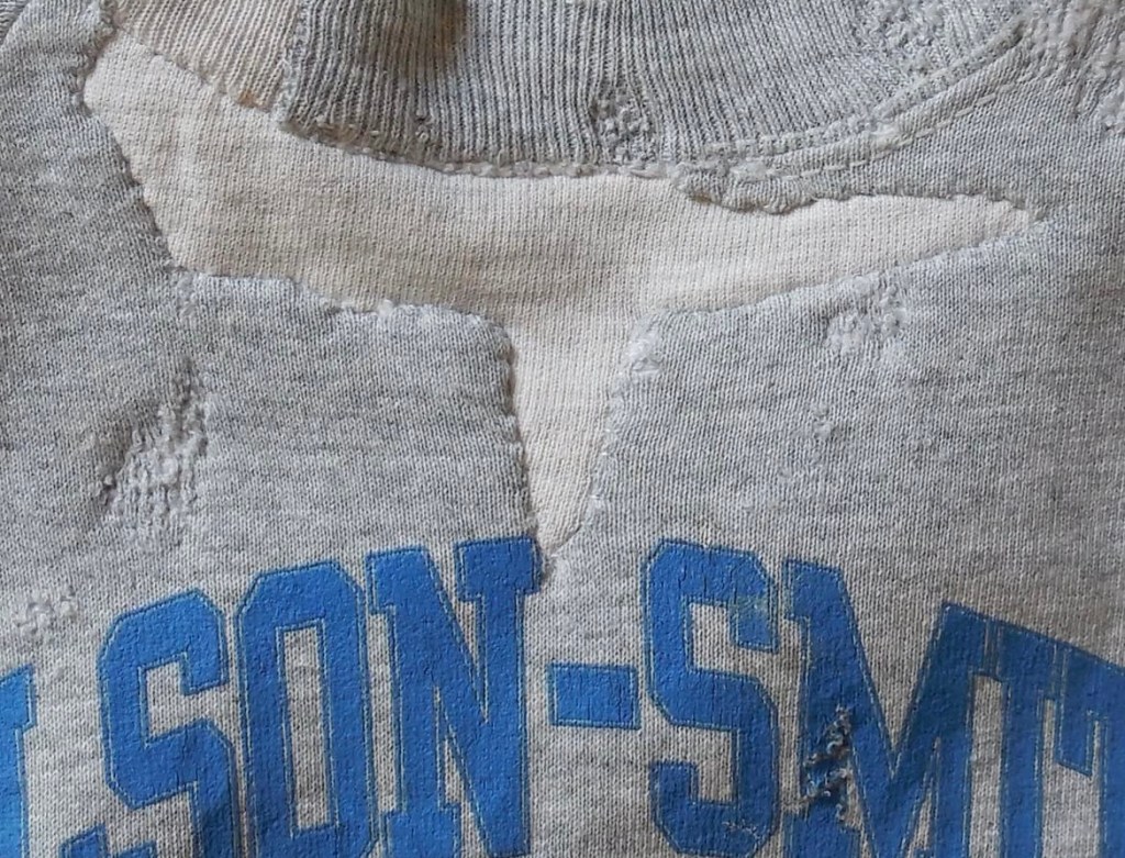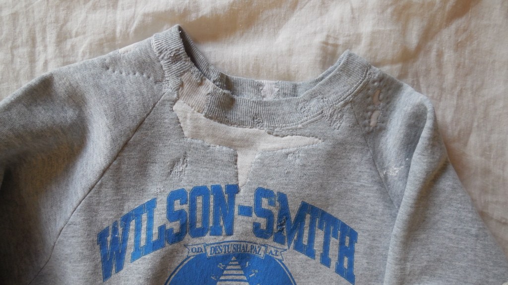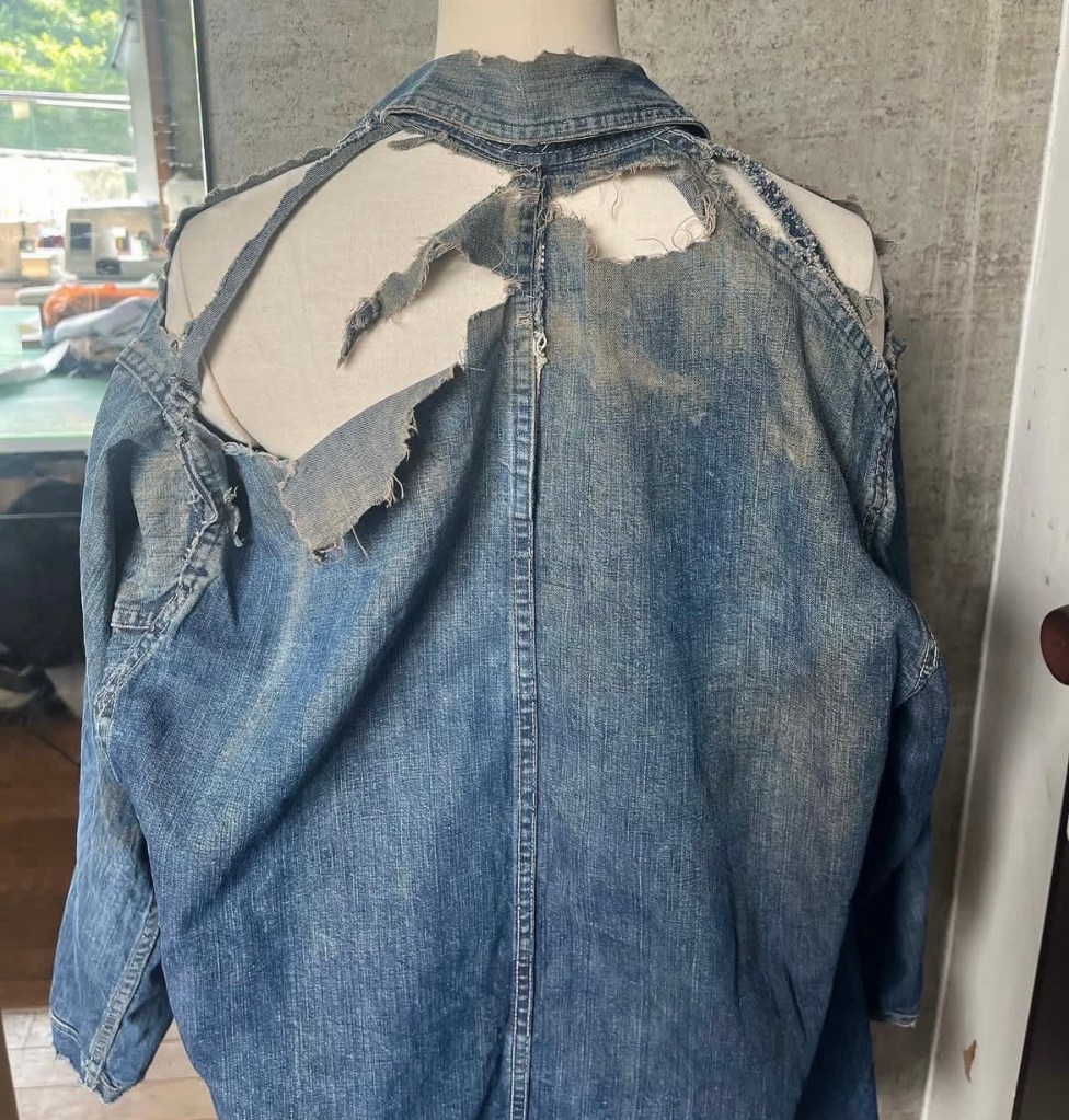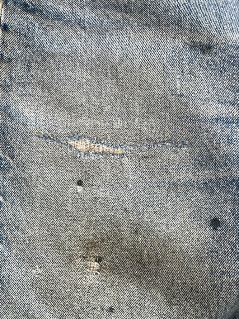 馴染むリペアと残すリペアの手加減で、リペア後にも破れの痕跡を残します。いつかボロボロになった日の事も忘れないように